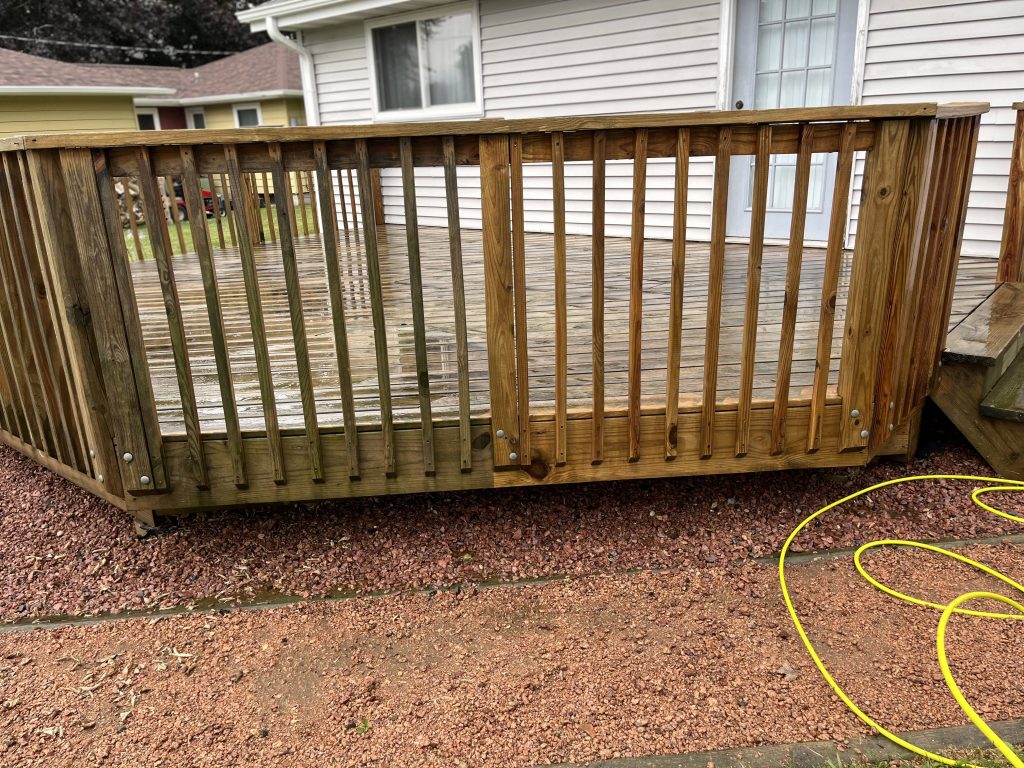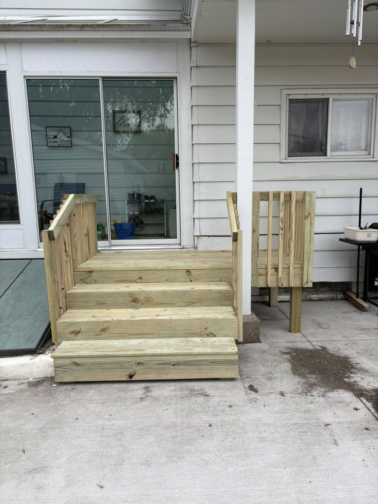 Railings aren’t optional on elevated decks—Appleton building code requires them on any deck over 30″ above grade.