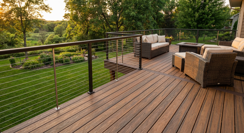 Composite and PVC decking costs more upfront but eliminates the endless staining, sealing, and splinter removal.