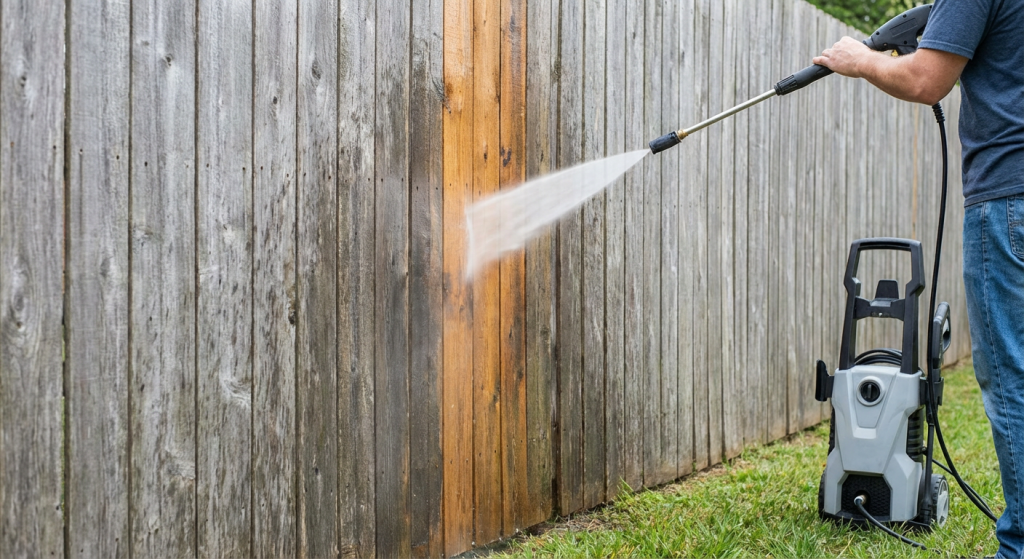 With proper cleaner – Deck brightener or oxygenated bleach removes organic growth without damaging wood.