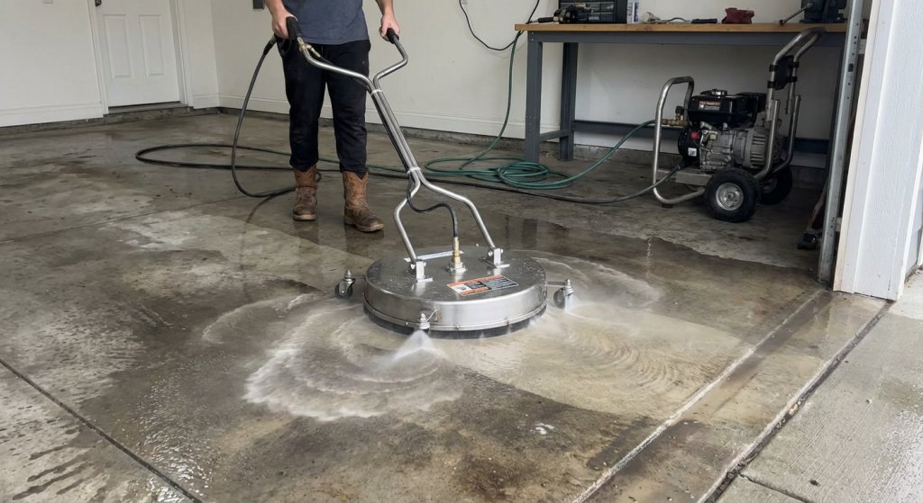 considering garage floor is “just concrete you park on.” A clean garage feels professional. A dirty garage feels abandoned.