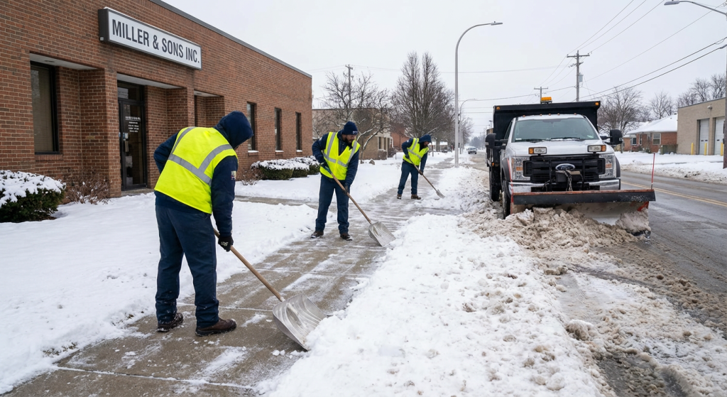 Residential plowing typically occurs between midnight and 7 AM so driveways are clear before work departure. Exact timing depends on when snow reaches trigger depth and our route optimization—we can’t promise specific times but target clearing before typical departure times. Commercial properties get service timed to business hours—parking lots clear before opening with repeated service during business hours if snow continues. We communicate if unusual conditions cause timing changes.